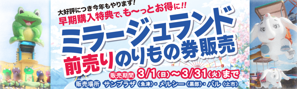 【お得情報!】ミラージュランド前売りのりもの券販売開始 3/1(日)~3/31(火)