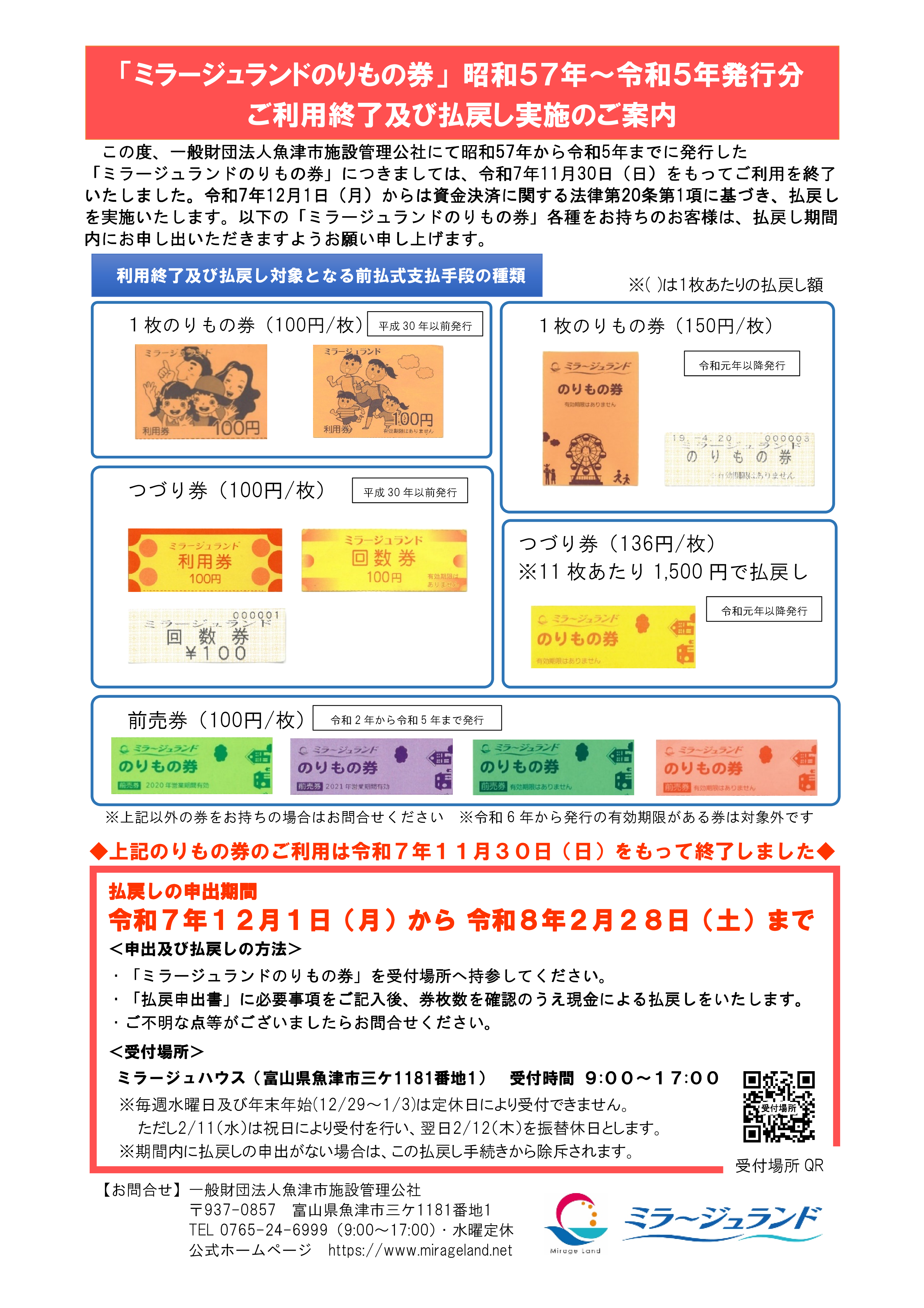 【重 要】「ミラージュランドのりもの券」昭和57年~令和5年発行分 ご利用終了及び払戻し実施のご案内
