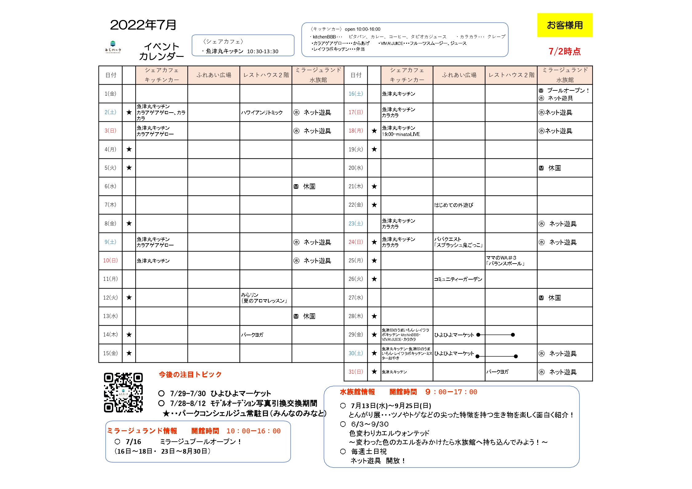 ※「みんなのみなと」は水族館横にある無料休憩施設です