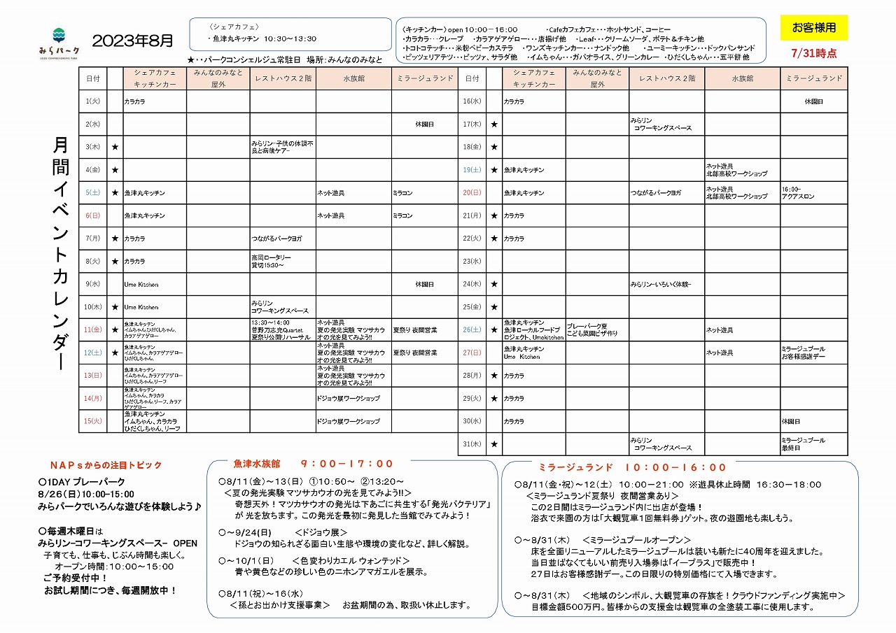 ◎イベントについて詳しい情報はみらパーク公式ページよりご覧ください。