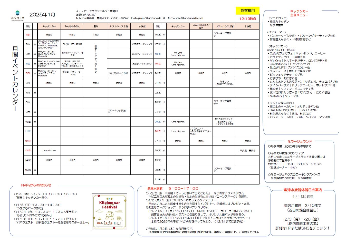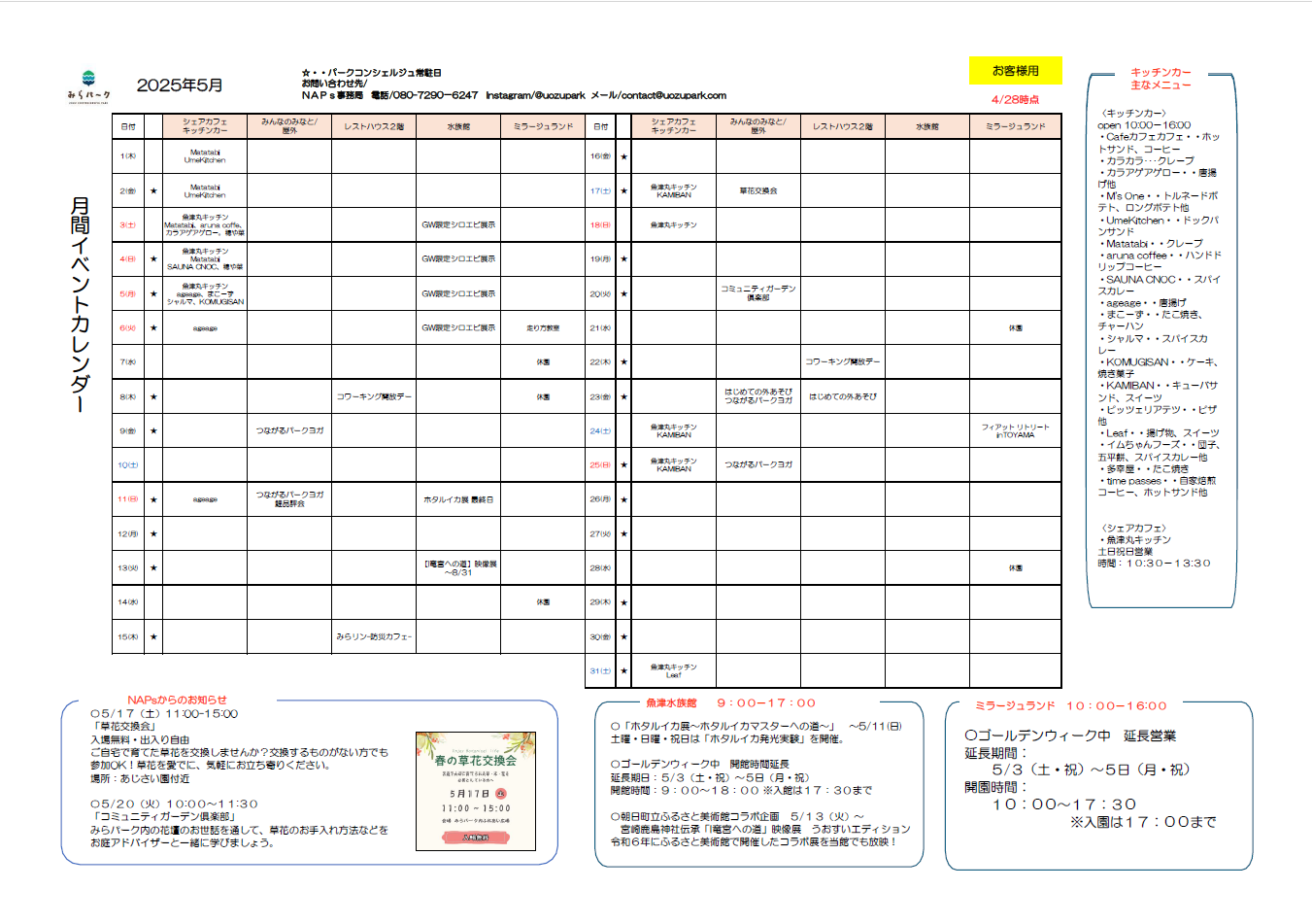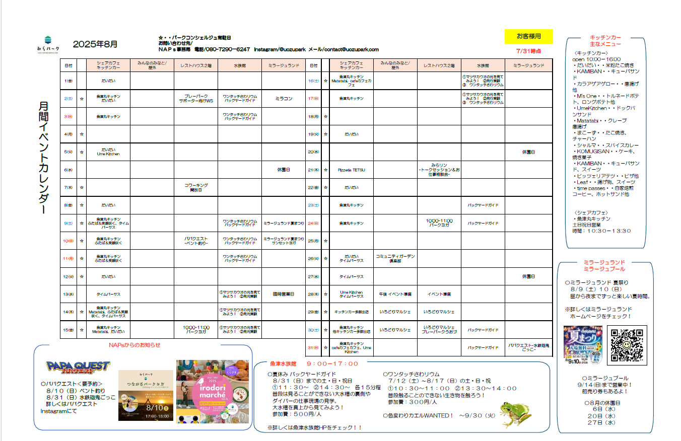 詳しくは @uozupark まで。
