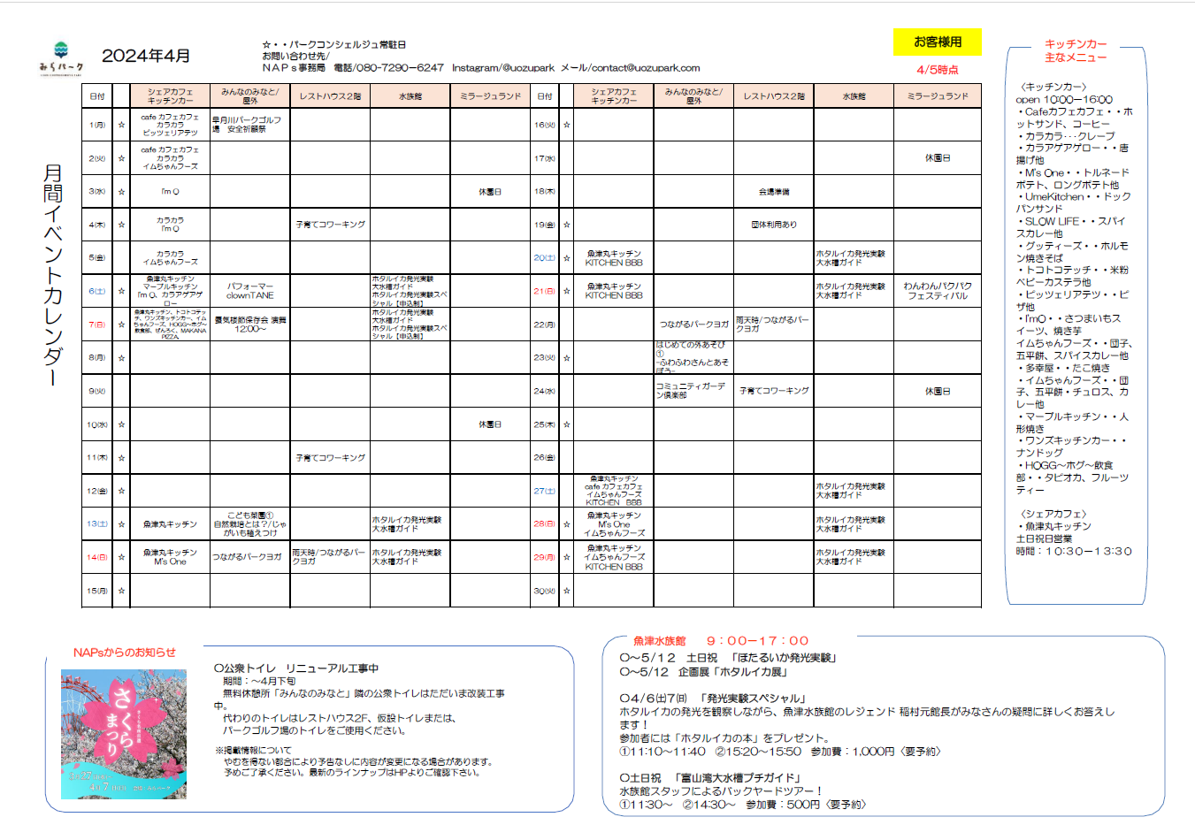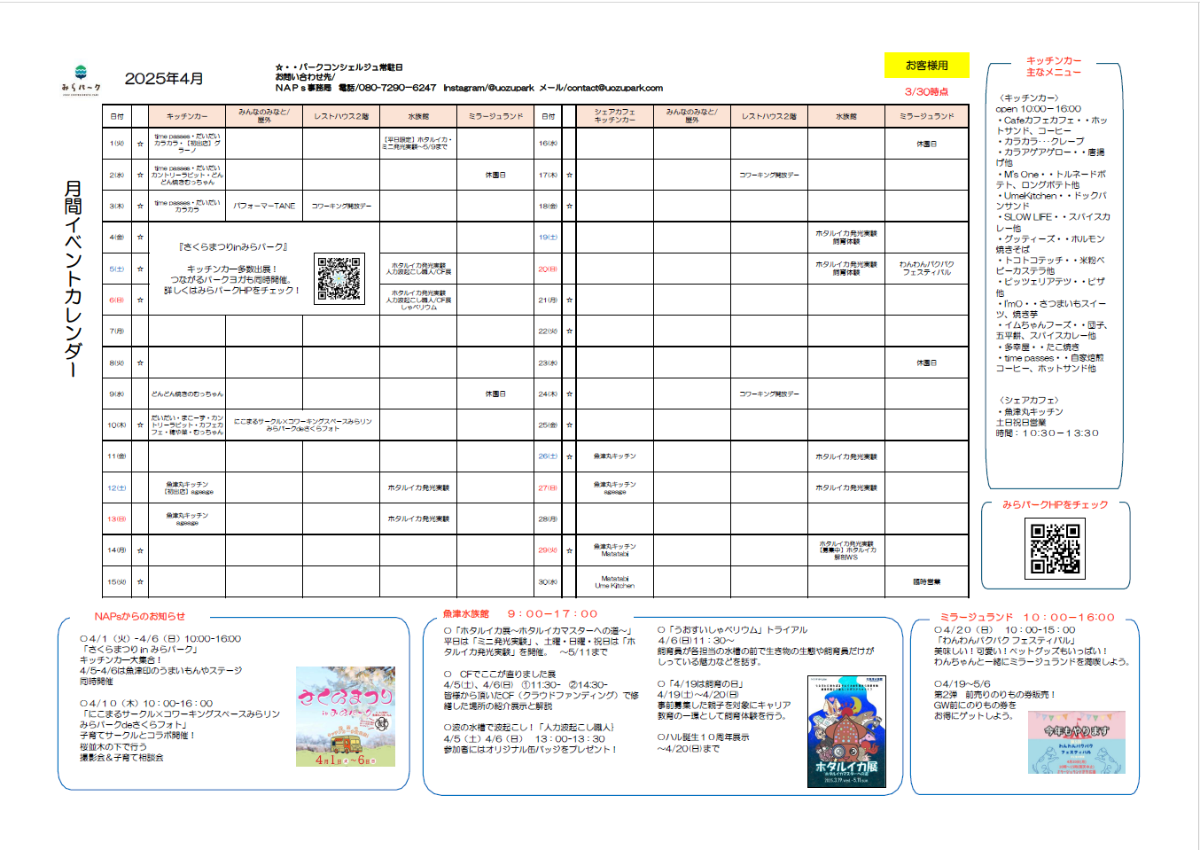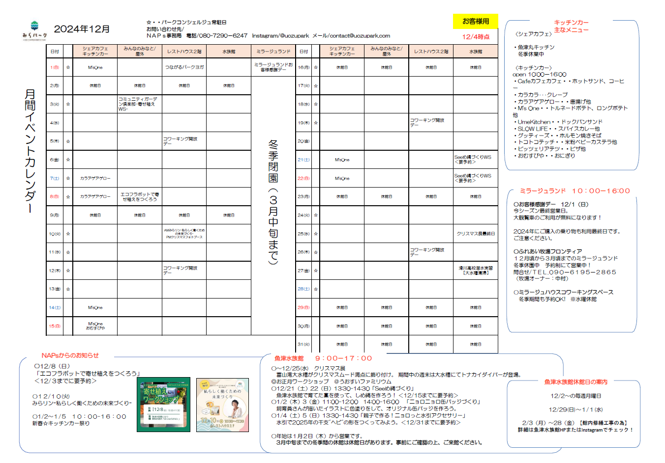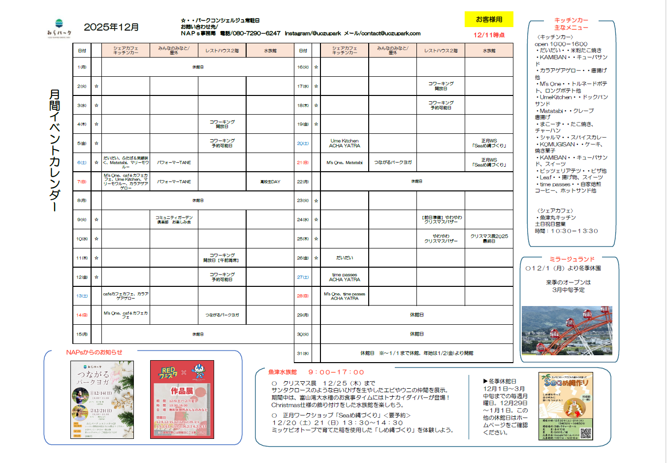 詳しくは @uozupark まで。